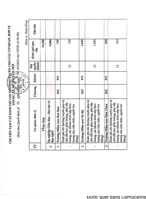 Quyết định tạm cấp dự toán chi ngân sách địa phương 2025 (tháng 7 năm 2025)