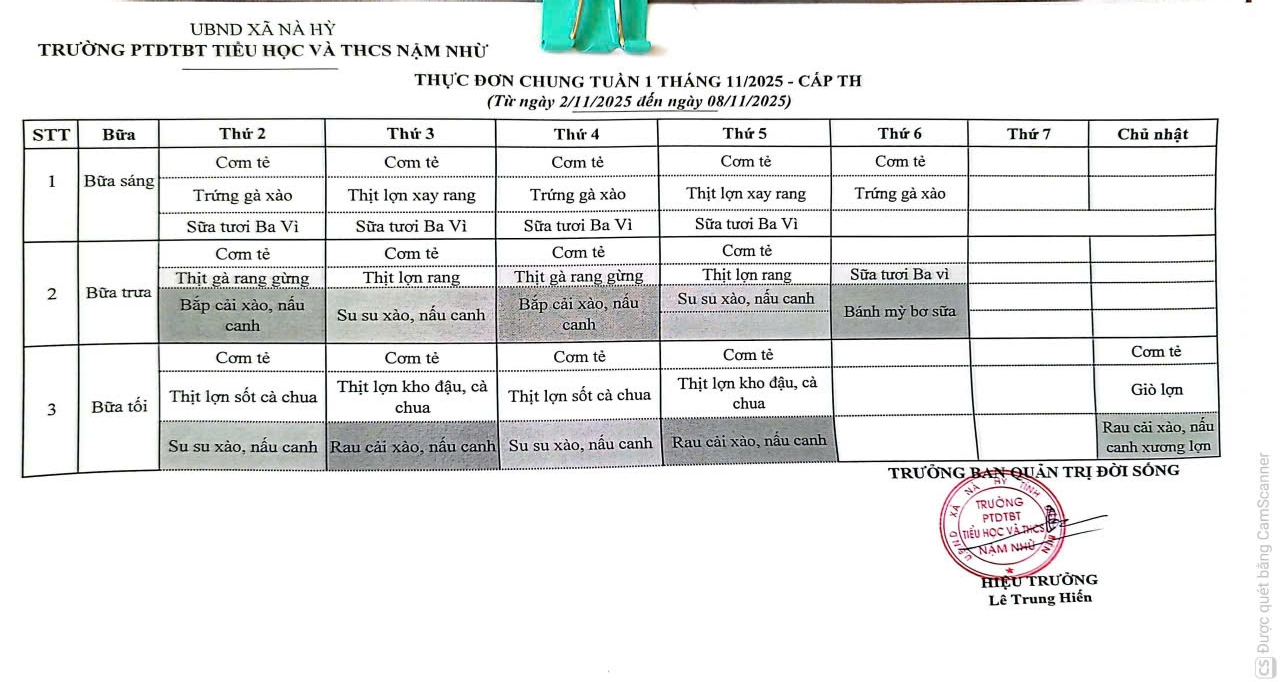 THỰC ĐƠN ĂN BÁN TRÚ THÁNG 11 - 2025