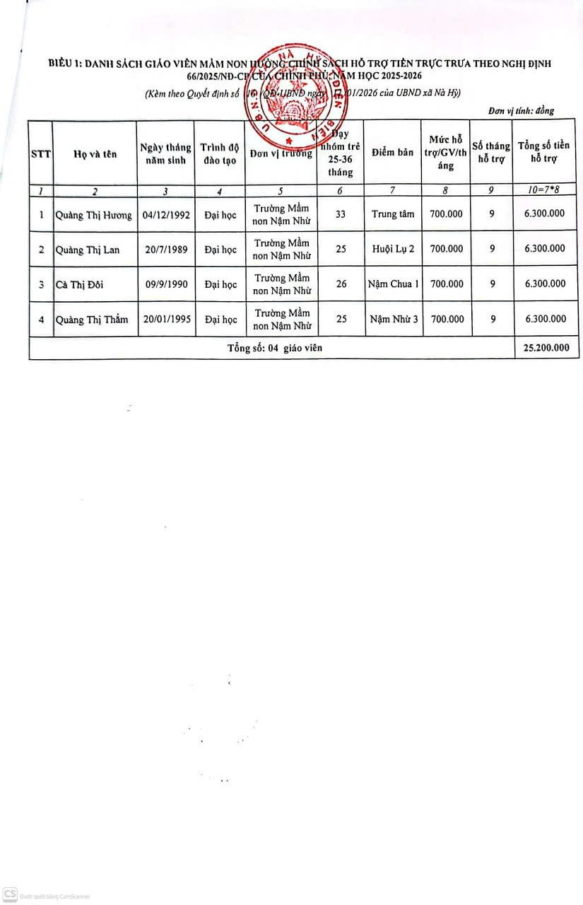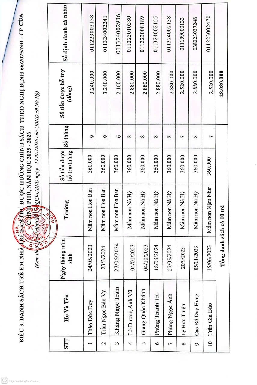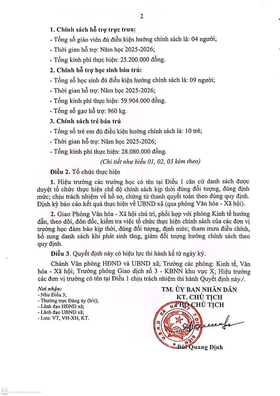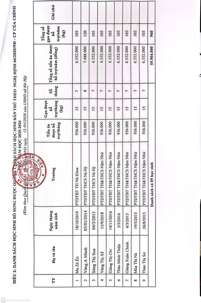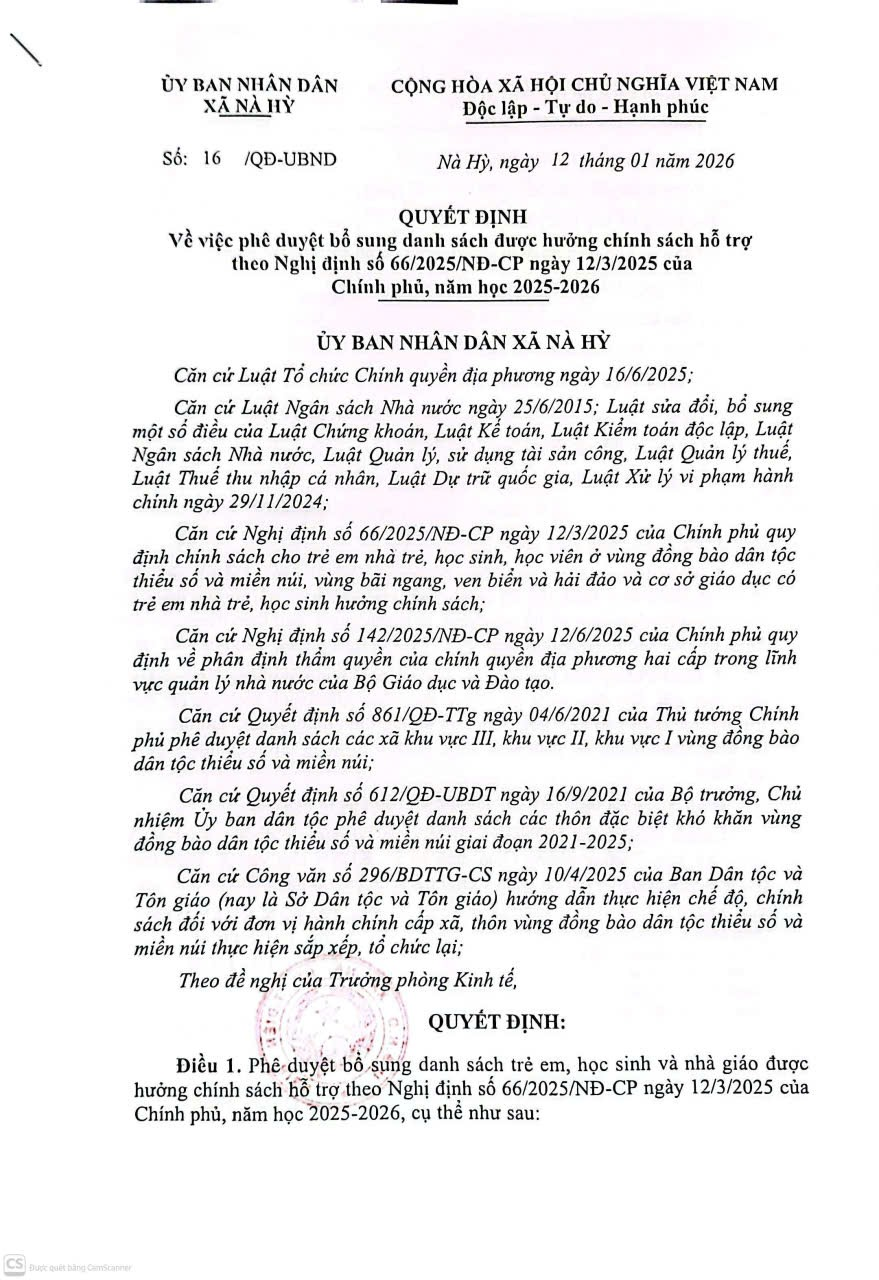 Về việc công khai Quyết định bổ sung danh sách được hưởng chính sách hỗ trợ theo Nghị định số 66/2025/NĐ-CP năm học 2025-2026.
